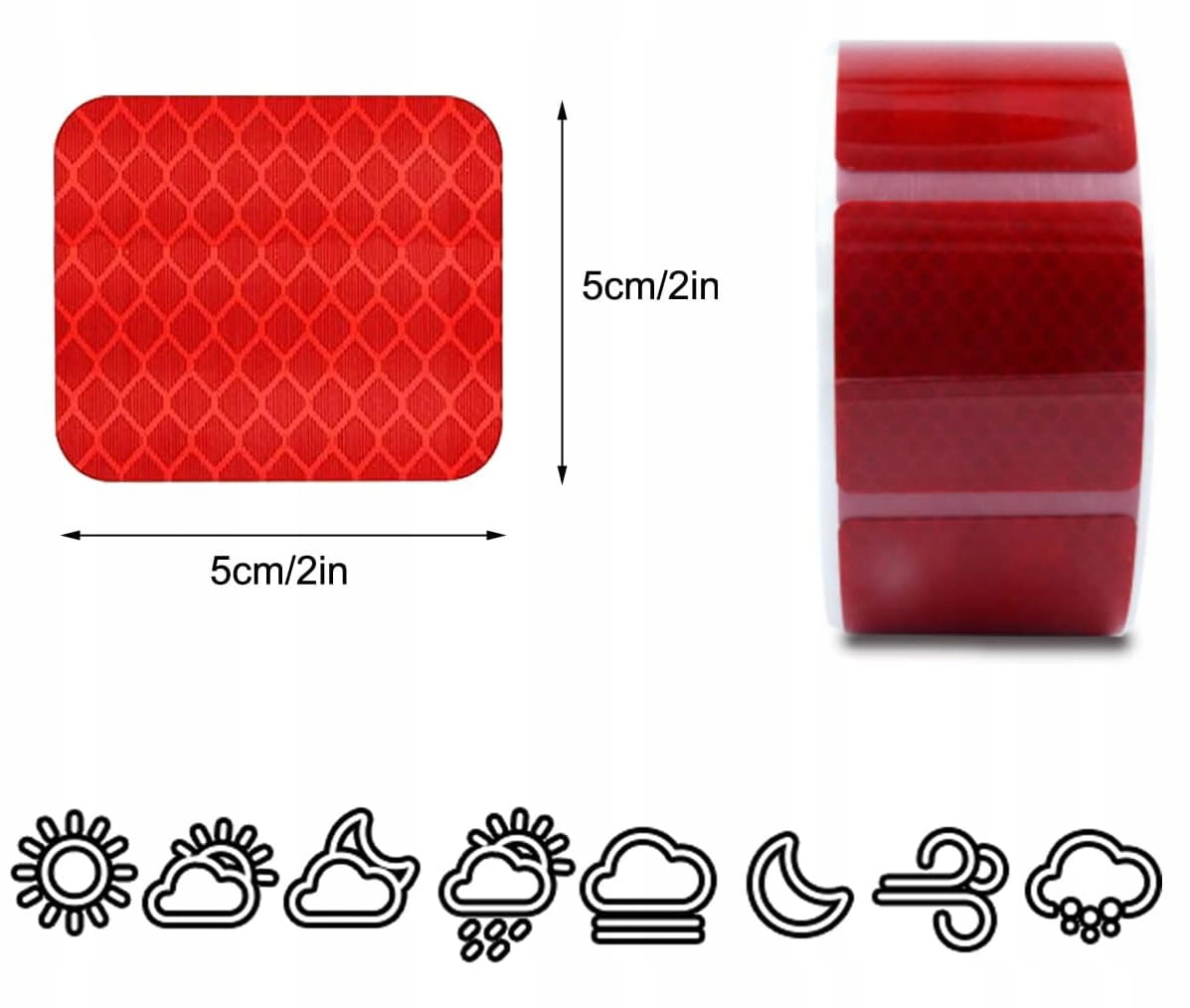 Taśma Odblaskowa Samoprzylepna Konturowa Czerwona 1M Ostrzegawcza 5x5cm