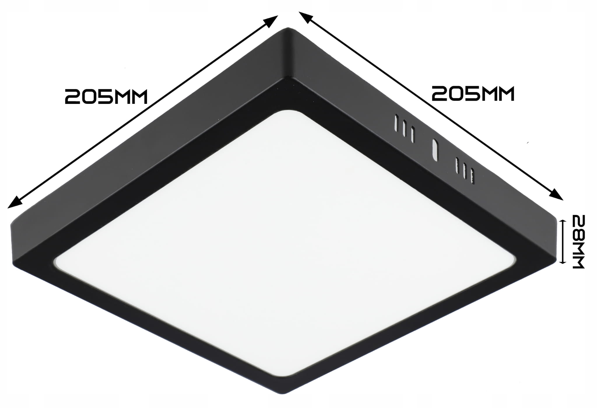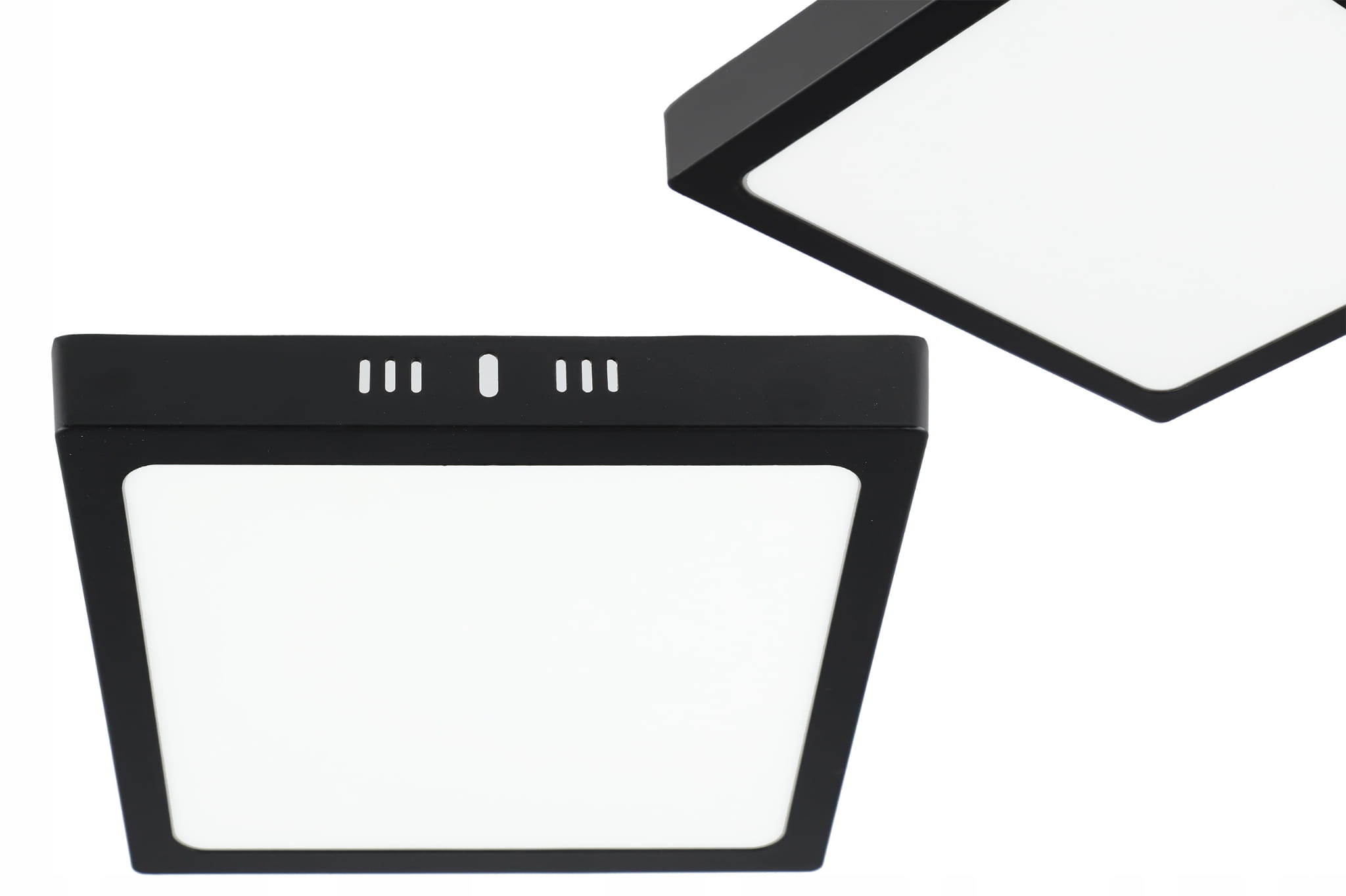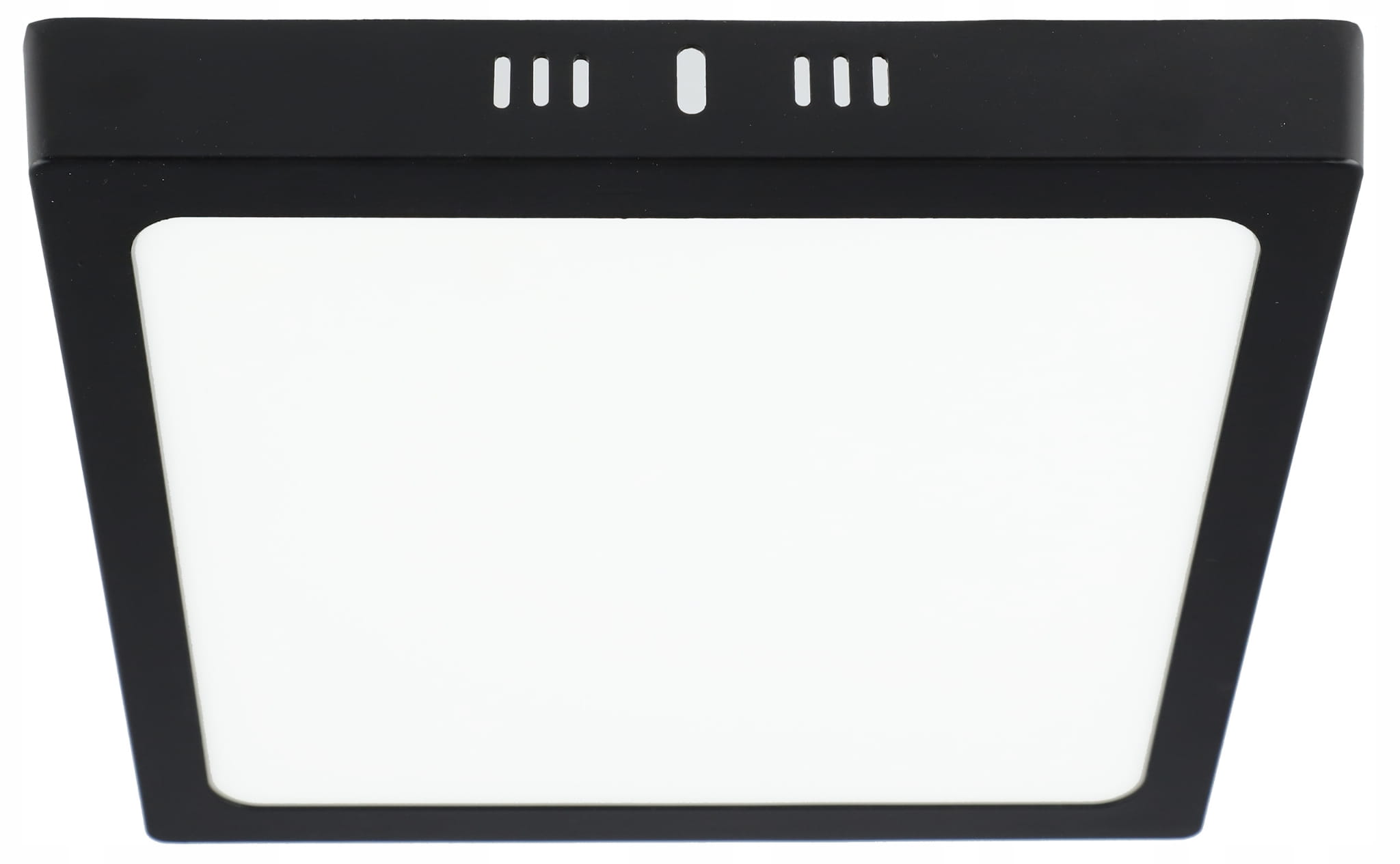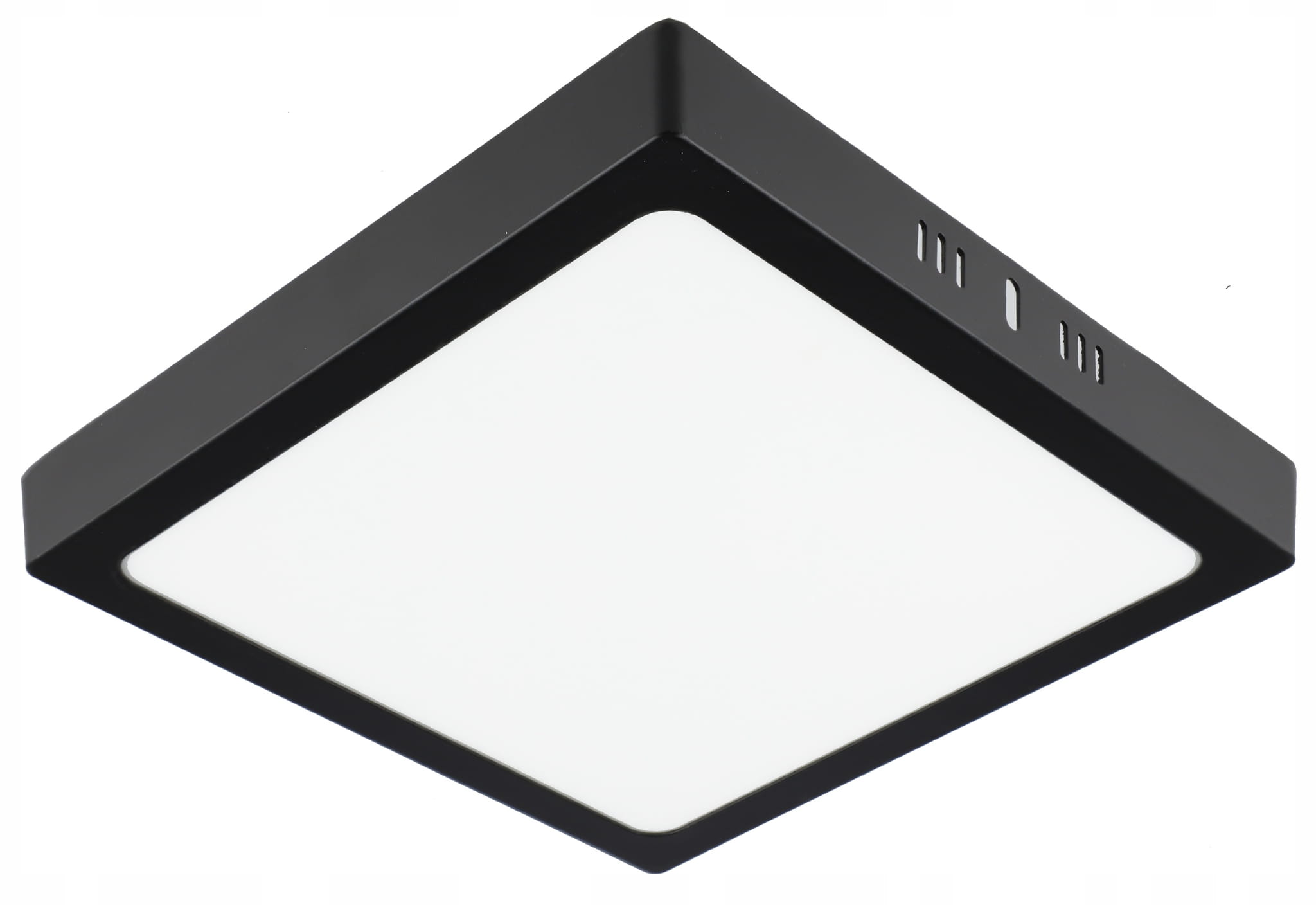 Kwadratowy Panel LED natynkowy w kolorze czarnym o mocy 18W i jasności 1620lm w barwie światła neutralnej białej